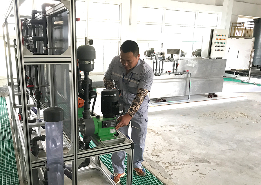 圖:機電設備部工作人員正在對供水設備進行維護保養