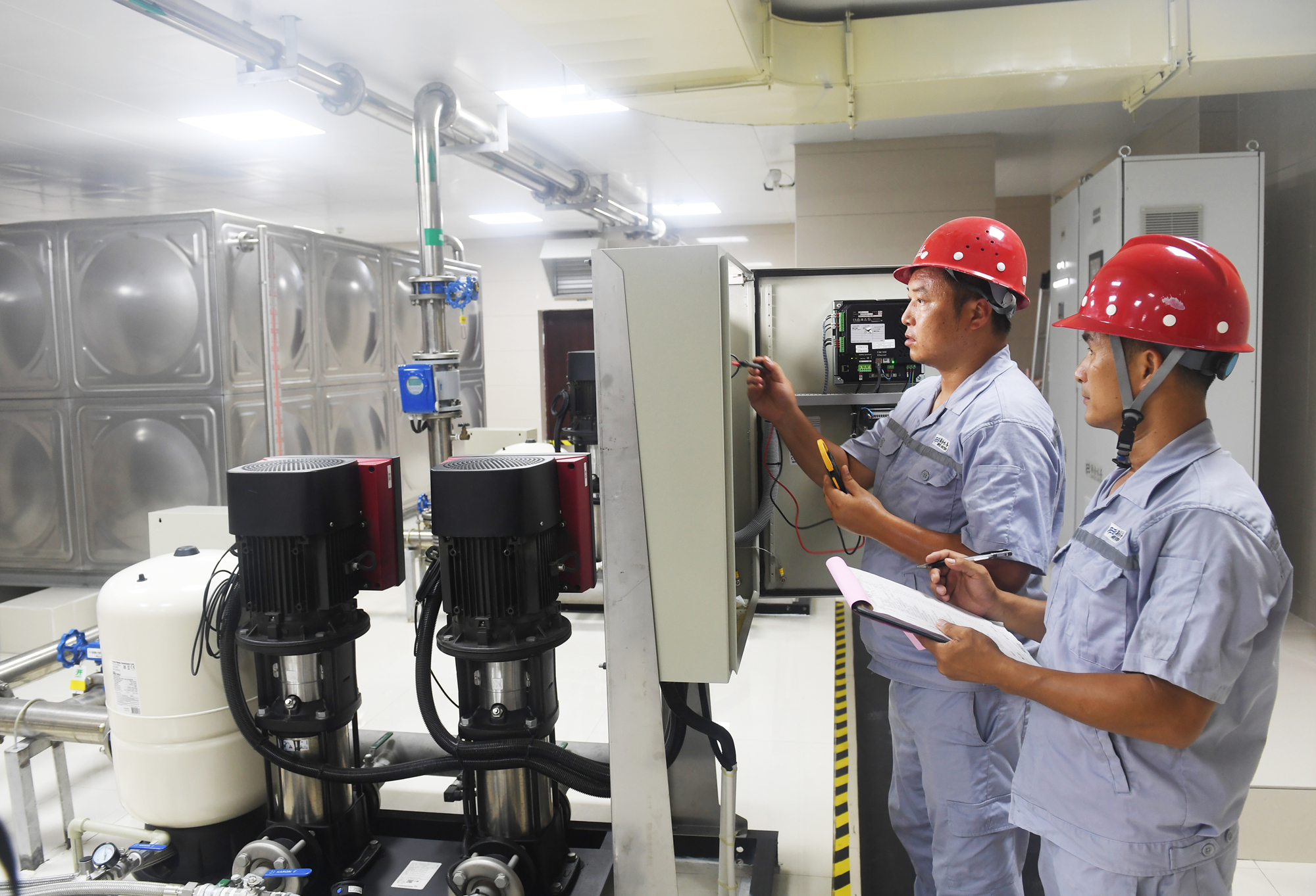 圖:確保設備正常運行 標準化泵房建設的推廣,是咸寧市護航供水安全的一大突破,有力保障了分布在城市各個角落“小供水站”的安全穩(wěn)定運行,為城市高層居民的供水默默貢獻力量。下階段,咸寧聯(lián)合水務有限公司將繼續(xù)堅持標準化泵房建設的目標,為人民群眾提供更好更優(yōu)的供水服務。 |