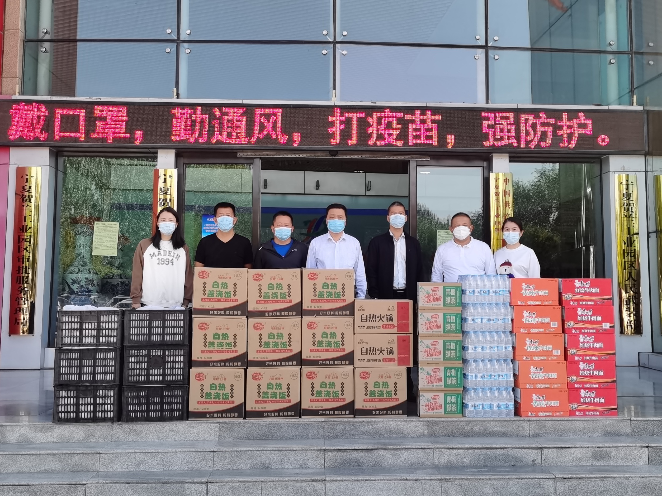 近期,寧夏中寧地區疫情較嚴峻,在全區上下眾志成城,共抗疫情的關鍵時刻,寧夏賀蘭聯合水務有限公司積極履行社會責任,踐行企業擔當,響應寧夏政府“一方有難八方支援”號召,向寧夏賀蘭德勝工業園區管委會捐贈幫扶物資,為中寧縣下社區、下基層的防疫人員提供力所能及的后勤保障。