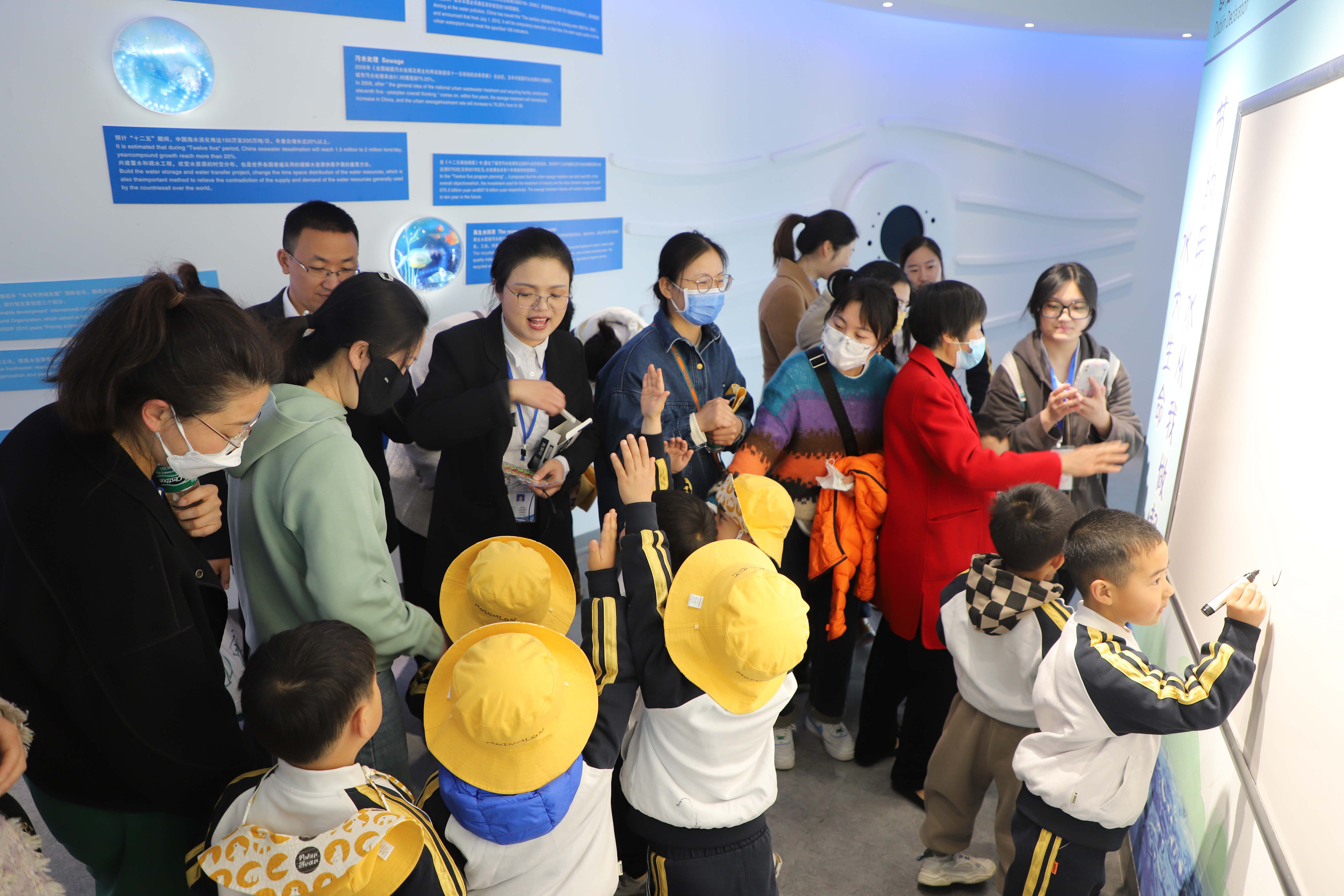 圖:活動合影 在宿遷市水文化展示館的“論水”展區(qū),公司工作人員為孩子們講解了宿遷城市發(fā)展與水一脈相承的歷史淵源、宿遷水域情況及供水事業(yè)發(fā)展的概況,介紹了公司的發(fā)展歷程和宿遷的供水管網(wǎng)分布情況。來到“制水”展區(qū),孩子們觀看了制水工藝視頻,了解制水過程。宿遷雖然水網(wǎng)密布,但包括駱馬湖、洪澤湖在內(nèi)的河湖大部分都是過境水,并不能存儲水,所以宿遷人均水資源占有量并不高,因此在最后的“節(jié)水”展區(qū),工作人員向孩子們說明了宿遷目前的用水現(xiàn)狀,并和孩子們分享了一些節(jié)水小妙招,引導孩子們增強節(jié)水意識。