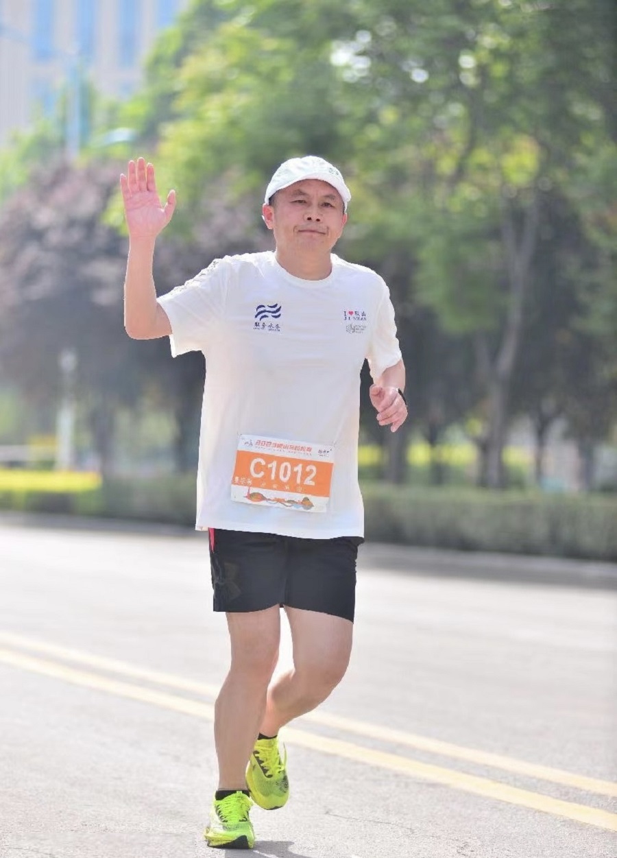 受邀參賽的山西區(qū)域和三門峽的領(lǐng)導(dǎo)同事們欣然應(yīng)約,組成團(tuán)隊(duì)參加了本次21.0975公里半程馬拉松和5公里歡樂跑。他們?nèi)橥度耄瑘?jiān)持不懈,以運(yùn)動(dòng)健兒的身份在賽道上展現(xiàn)出活力四溢的風(fēng)采,彰顯了當(dāng)代水務(wù)人朝氣蓬勃、拼搏向前的精神面貌。他們不畏困難,克服挑戰(zhàn),頑強(qiáng)地奔跑著,一路上生命與激情交織,呈現(xiàn)出耀眼的光芒。他們完賽并獲得了獎(jiǎng)牌,特別值得一提的是山西區(qū)域總經(jīng)理夏學(xué)春在半程馬拉松中取得了出色的成績,僅用1小時(shí)48分鐘完成比賽。 “跑步不僅讓人身體健康,更使我們內(nèi)心平靜,利用跑步的時(shí)間來放空自己或者思考問題,面對繁重的工作時(shí),可以更從容面對,在考驗(yàn)選手的體能、心理素質(zhì)的同時(shí)在奔跑中磨煉我們的堅(jiān)毅品格和拼搏精神。”面對采訪,夏總激動(dòng)地這樣說道。