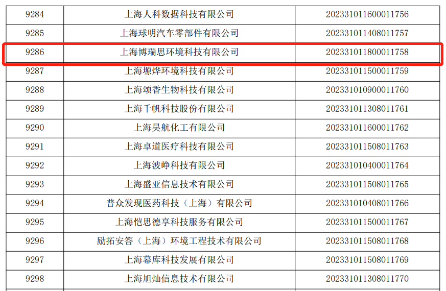 | 喜報 | 上海博瑞思環境科技有限公司入庫2023年度第二批科技型中小企業! | ||
