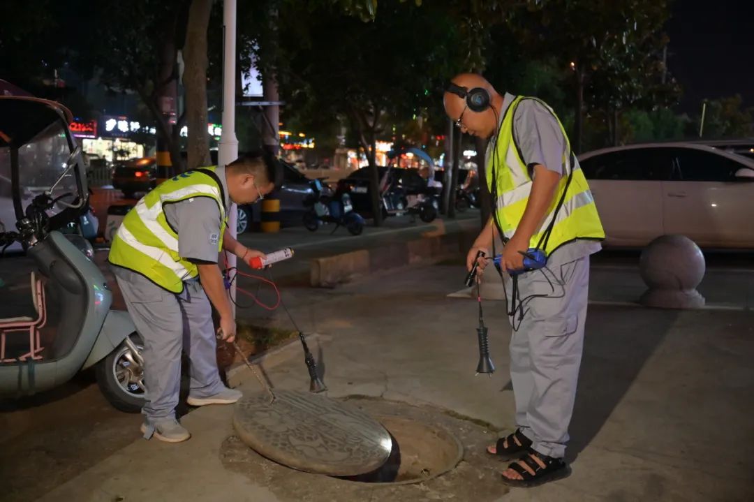 火“熱”奮戰,加強管網巡查 為進一步保障城區供水管網運行安全,及時發現管道暗漏點,咸寧聯合水務管網探漏人員在炎炎夏日,沿著城區大街小巷對供水管道進行“體檢”。有時,需要安靜、車流量小的環境,他們就選擇深夜出動,一手拿著聽音桿,一手拿著手電筒,利用儀器檢聽供水管網運行情況,為能迅速判斷是否漏水以及精準定位漏水點,有時需要反復探測十幾次,力爭將各類管道漏水隱患扼殺在萌芽中。同時,在供水高峰期,探漏人員還將常態化開展管網巡查,將責任層層落實到個人,力求件件有人管,項項有落實,事事出成效,保障供水管網的運行安全穩定。