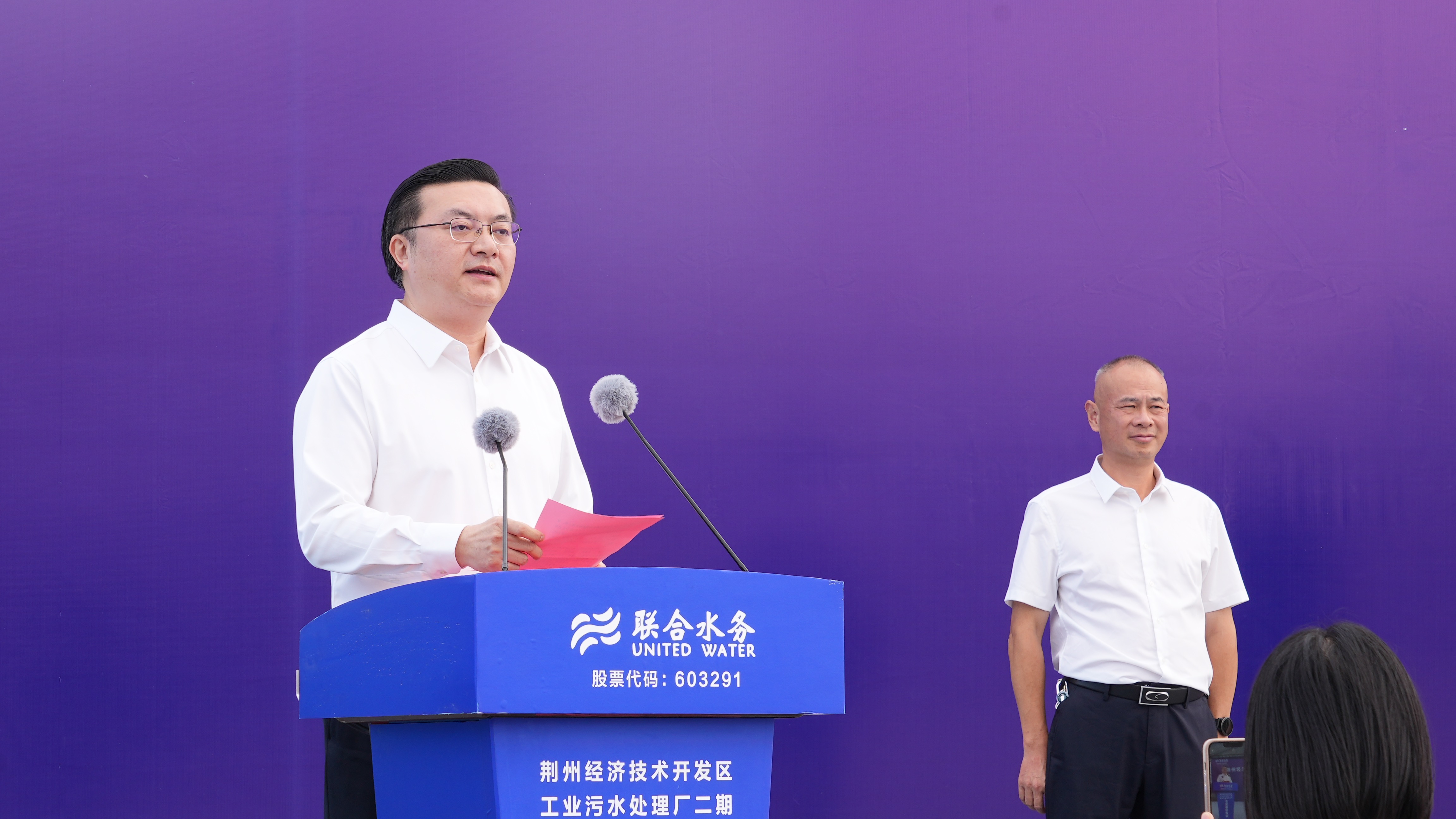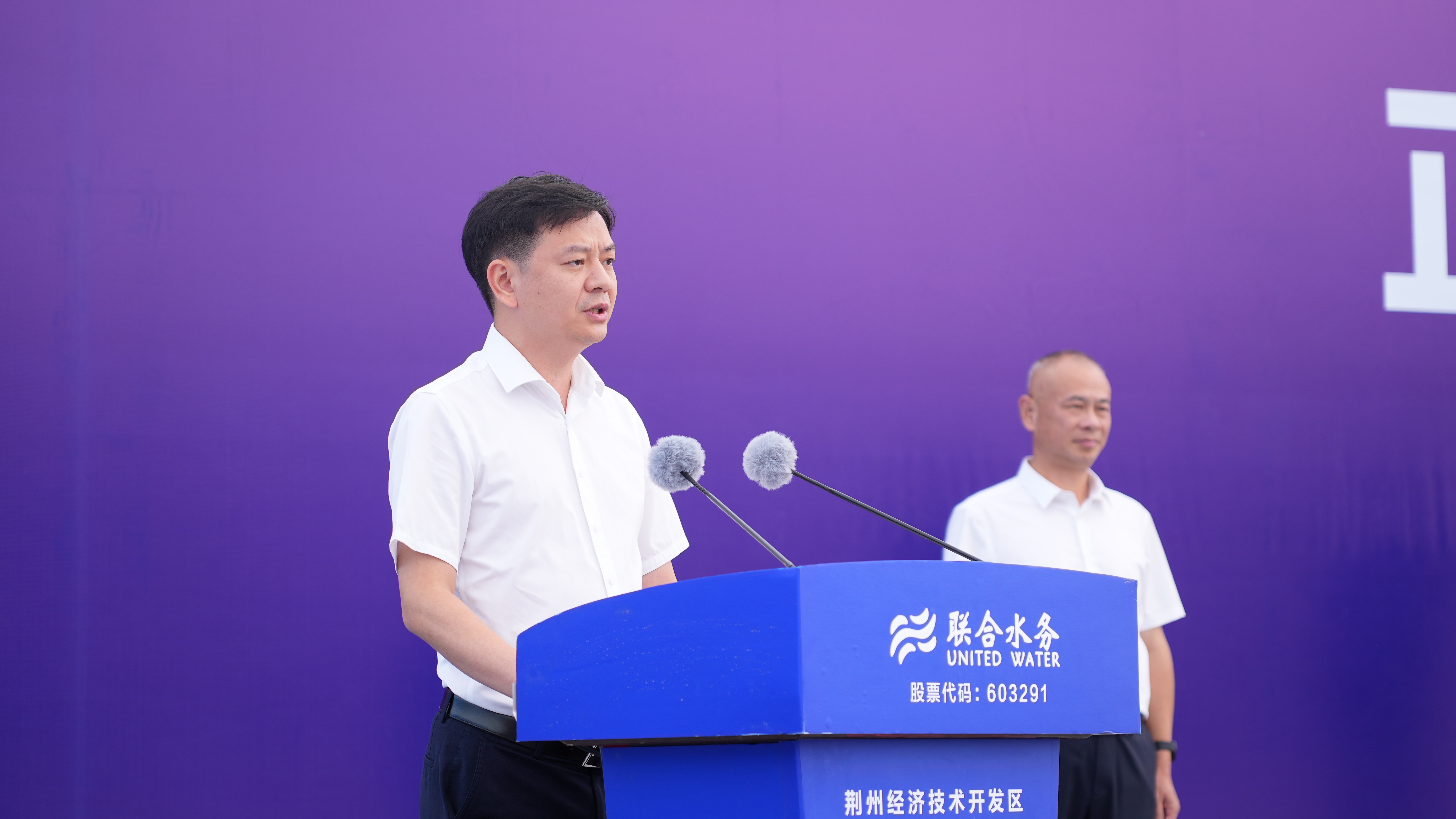 最后,伴隨著激昂的音樂聲以及高亢的鳴笛聲,聯(lián)合水務董事長兼總裁俞偉景宣布聯(lián)合水務申聯(lián)環(huán)境二期項目正式投產!