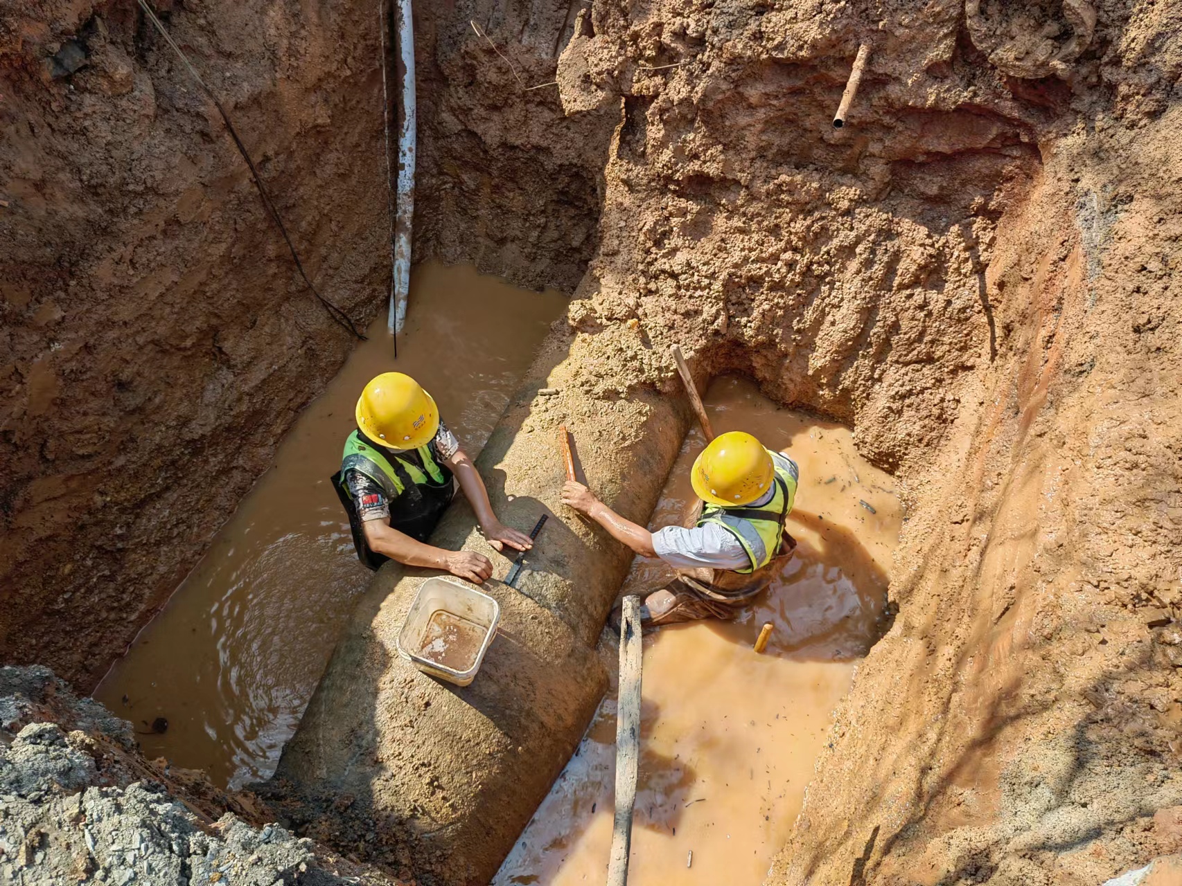 用我服務真心,還你供水暢通。由于施工難度大,維修時間長,現場勘查完后,席總立即召集思源公司管理層,開會確定搶修方案,明確各部門保障供水工作任務,管網部編制人、材、機、料等組織架構,同步制定送水計劃;生產部調整片區供水壓力;客服部通知用戶做好儲水準備;行政部通知政府部門及重點客戶等等。各部門按照會上要求指示,如火如荼開展搶修保障服務。
