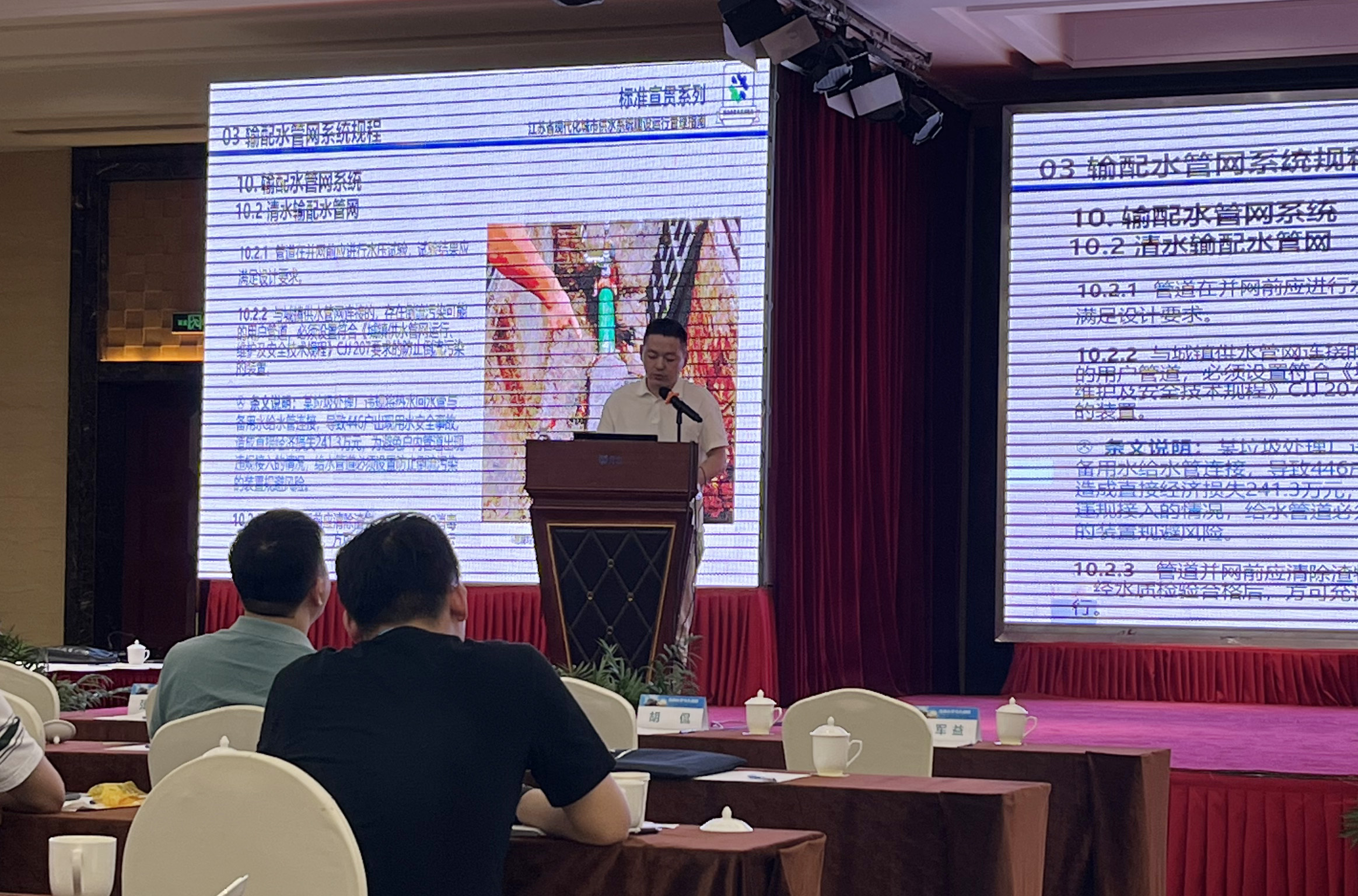 6月18日至21日,由江蘇省城鎮(zhèn)供水安全保障中心組織的現(xiàn)代化城市供水系統(tǒng)建設(shè)運行管理培訓(xùn)在無錫舉行,會議詳細解讀了《江蘇省現(xiàn)代化城市供水系統(tǒng)建設(shè)運行管理指南》(下稱《指南》)相關(guān)內(nèi)容,聯(lián)合水務(wù)宿遷公司作為該指南參編單位受邀參加培訓(xùn),公司技術(shù)部負責人陳鋒作為聘請專家受邀就《取水和輸配水管網(wǎng)系統(tǒng)建設(shè)運行管理》專題進行現(xiàn)場授課。