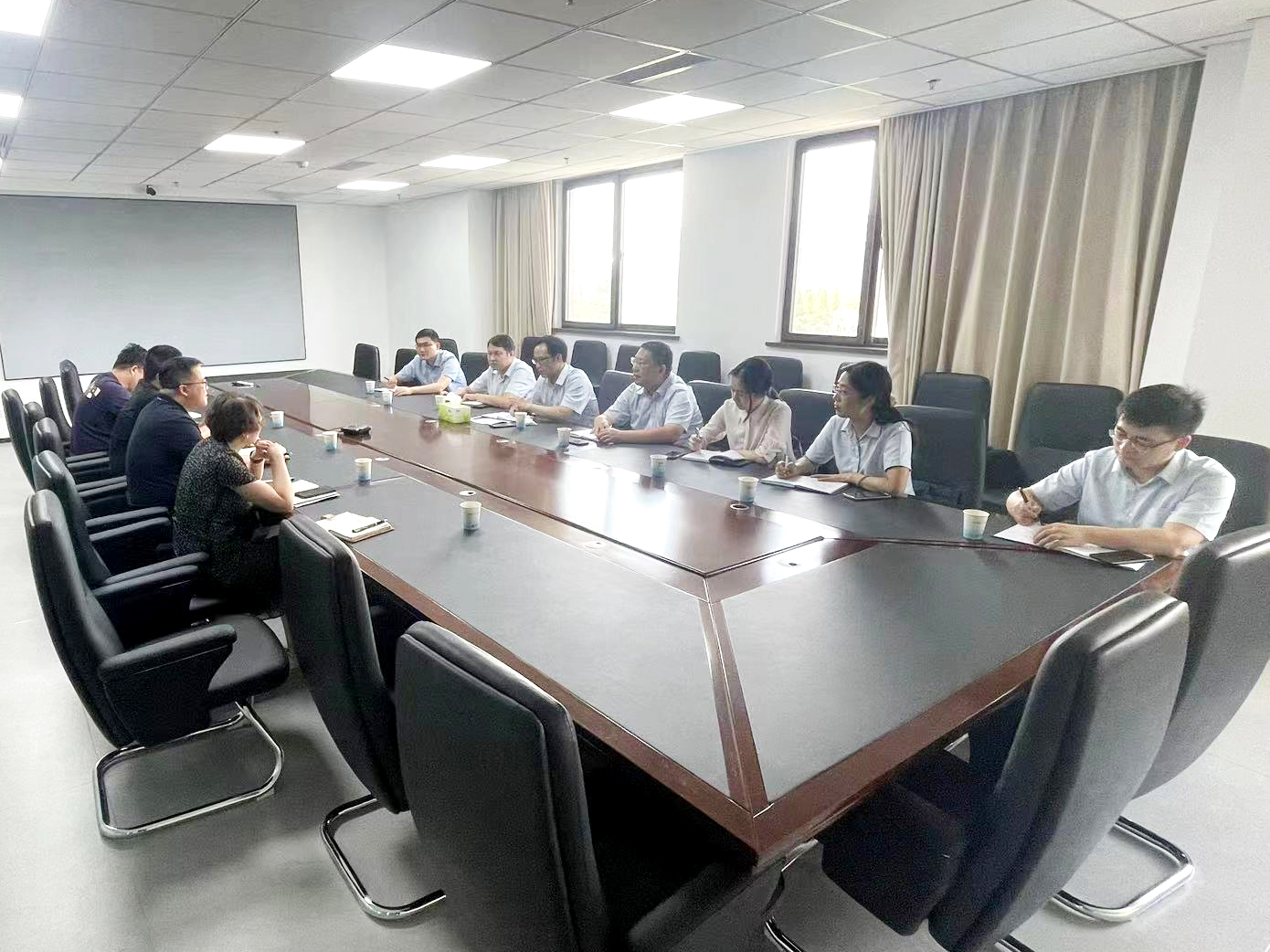 會上,朱總圍繞企業融資需求、供應鏈金融、國際業務拓展等多個領域展開了具體介紹。他表示,建行將充分發揮其在信貸支持、支付結算、財務顧問等方面的專業優勢,為聯合水務提供量身定制的金融服務方案,幫助解決發展過程中的資金瓶頸問題,同時借助金融科技的力量,提升服務效率,降低融資成本,助力聯合水務實現數字化轉型和國際化戰略。吉總對建行團隊提出的方案表示了感謝與認同,并期待通過此次合作,能夠進一步拓寬融資渠道,優化財務結構,加速產品創新和市場拓展,共同探索更多合作可能,實現互利共贏。