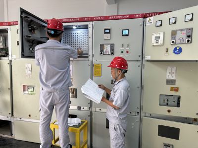 9月26日凌晨十二點半,為配合第二天早上高壓配電室小纜線一側(cè)的改造工作,機電設(shè)備部的人員在盡可能不影響市民用水的情況下,快速將主供電源進(jìn)行切換,做到了既不影響供水,又能為王英水廠二期施工創(chuàng)造安全條件。 9月26日早晨六點,施工單位人員準(zhǔn)時在高壓配電間開始了小纜線一側(cè)兩臺高壓電動機柜的并柜工作,為了盡快完成高壓配電室的改造工作,降低供水安全隱患,工人們爭分奪秒的搶施工進(jìn)度。終于,在下午五點鐘,高壓配電間新增的4臺高壓柜在檢測人員對其進(jìn)行交接實驗檢驗合格后,4臺高壓柜均順利通電,可順利開展后續(xù)的調(diào)試工作。