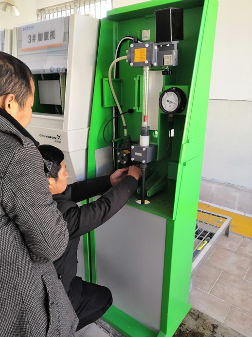 近期,王英水廠在年前設備檢修中,發現4#加氯機浮子流量計有異常現象,浮子上下跳動不規律,有時完全上浮不起來,影響到加氯量穩定性。為保證制水生產安全,機電設備部立即組織技術人員,對該加氯機進行檢修。 詳細觀察后,開始認為是加氯管道堵塞,拆開管道未看到異物,氯氣進出管道沒有看到懷疑點,進而對加氯機內部進行研究;逐一對連接件進行拆解測試,最后判斷出故障點應在減壓調節器上。該調節器結構各真空調節器相似,估計是調節器內部膜片覆蓋的腔體間進氣不通暢,導致氯氣無法與調節器穩定、通暢輸出。 維修人員將現場情況與設備售后工程師溝進行通,給出意見可能是調節器內有殘渣異物,堵塞腔體連通孔。小心翼翼拆開后果然看到里面有不少粉末性殘渣,整個膜片上附著一層鐵銹灰一樣東西,各個小腔體內殘留著褐色粉末。維修人員對拆解開的減壓調節器用溫水細細進行清洗,然后放在太陽底下曬了幾個小時,水漬完全干后再安裝到加氯機上進行調試。加氯管道閥門開啟后,立即恢復正常運行。 經過這幾天觀察,該加氯機再未出來類似故障現象。