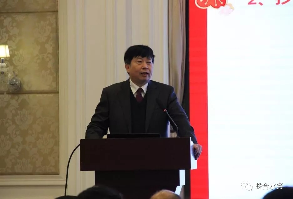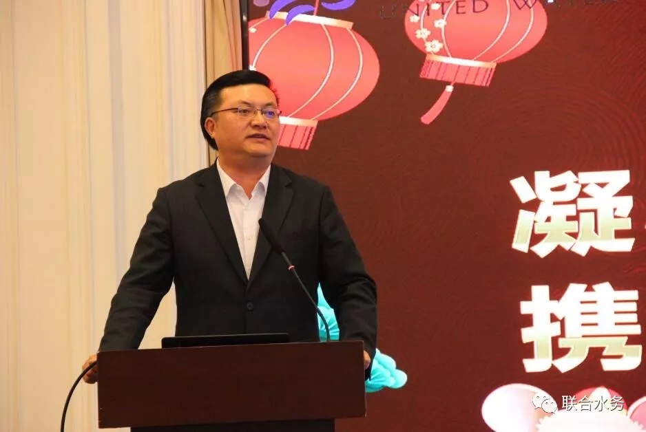 圖1:會議現場 十年光陰、彈指一揮,我們跨越重重困難;十載奮斗、繼往開來,我們書寫發展新篇。本屆年會的主題為“凝心聚力,攻艱克難,攜手共創新輝煌”,從2009年至2019年,咸寧項目公司在聯合水務集團的帶領下走過了整整十個年頭。會上,咸寧聯合水務有限公司總經理毛雄輝、咸寧聯合市政工程公司總經理沈志剛分別對十年來的發展變化和2019年工作做了總結報告。 首先,咸寧聯合水務有限公司總經理毛雄輝對2019年的工作進行了匯報。2019年對于咸寧公司是意義非凡的一年,全體員工緊緊圍繞全年工作目標和任務,團結一心,開拓進取,在供水安全、銷售收入和綜合考核等重點工作中下功夫,各項工作有序推進,取得了可喜的成績。值得一提的是,公司水檢中心在2019年取得CMA資質,并加入省水質監測網,生活飲用水水質檢測能力全省同行業第二,在年度省水質抽查中,合格率達到100%。喜悅伴著汗水,成功伴著艱辛。可喜的成績來之不易,毛總在總結中回顧了過去的一年公司在提升服務質量方面做出的工作,公司通過舉辦員工技能培訓、走訪大客戶等系列活動,堅持將服務做到“走出去,引進來”,進一步做到“內強素質,外樹形象”。通過總結,毛總還分析了管網漏損大、公司部分人員執行力不強等工作中的不足之處,并在會上就2020年主要工作做出了部署和安排。 接著,咸寧聯合市政工程公司總經理沈志剛做了總結匯報,沈總從公司十周年的主要經濟指標完成情況和工作中存在的不足進行了重點分析和匯報,就成本、制度、質量和回款四個方面工作進行了詳細分析,并提出在新年工作要求和計劃。