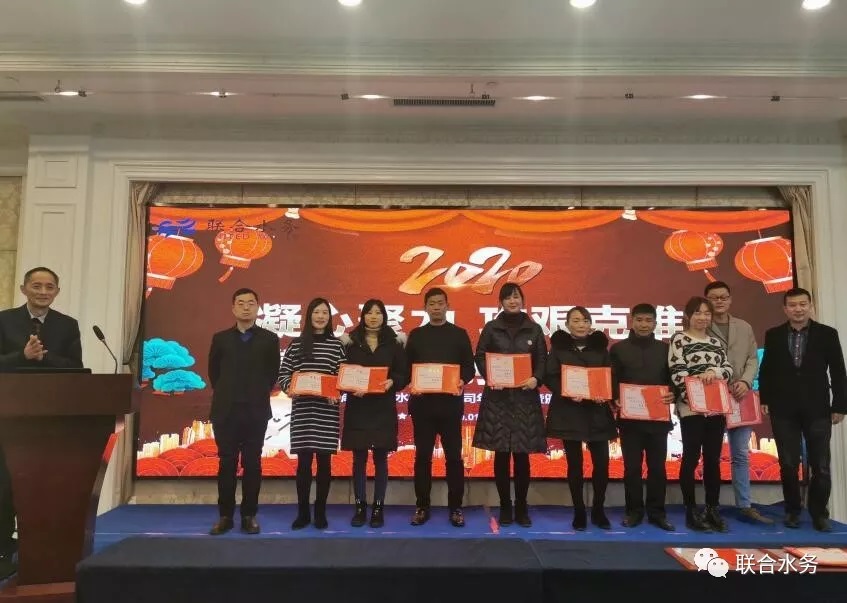 圖7:先進部門合影留念 最后,劉總做出了重要講話。劉總對咸寧項目公司十年以來取得的成績表示肯定和祝賀,并對兩個項目公司的年終總結進行了點評,肯定了公司領導人在匯報中發現問題、提出問題、分析問題的態度,劉總要求在2020年,公司要將產銷差作為重點工作抓,同時也要緊跟咸寧市的重點項目和發展方向,作為供水民生企業,要主動出擊、主動作為、主動服務,為推動咸寧城市的發展盡職盡責。公司各部門和員工要齊心協力,挑戰年度目標和任務,敢于突破固有思維和框架,提高執行力,各項工作都要未雨綢繆,實現跨越式發展!