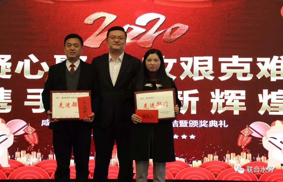 承繼輝煌辭舊歲,銳意進取譜新篇。1月19日上午,咸寧聯合水務有限公司在溫泉碧桂園酒店召開2019年度總結表彰大會。聯合水務集團高級副總裁劉猛、總裁助理兼財務總經理陳國清、人力資源行政總經理楊麗霞、運管中心總經理王歡、采購總監曹雷等領導,以及咸寧聯合水務主管級以上人員、先進員工參加了會議,會議由咸寧聯合水務有限公司人事行政副總經理張偉華主持。