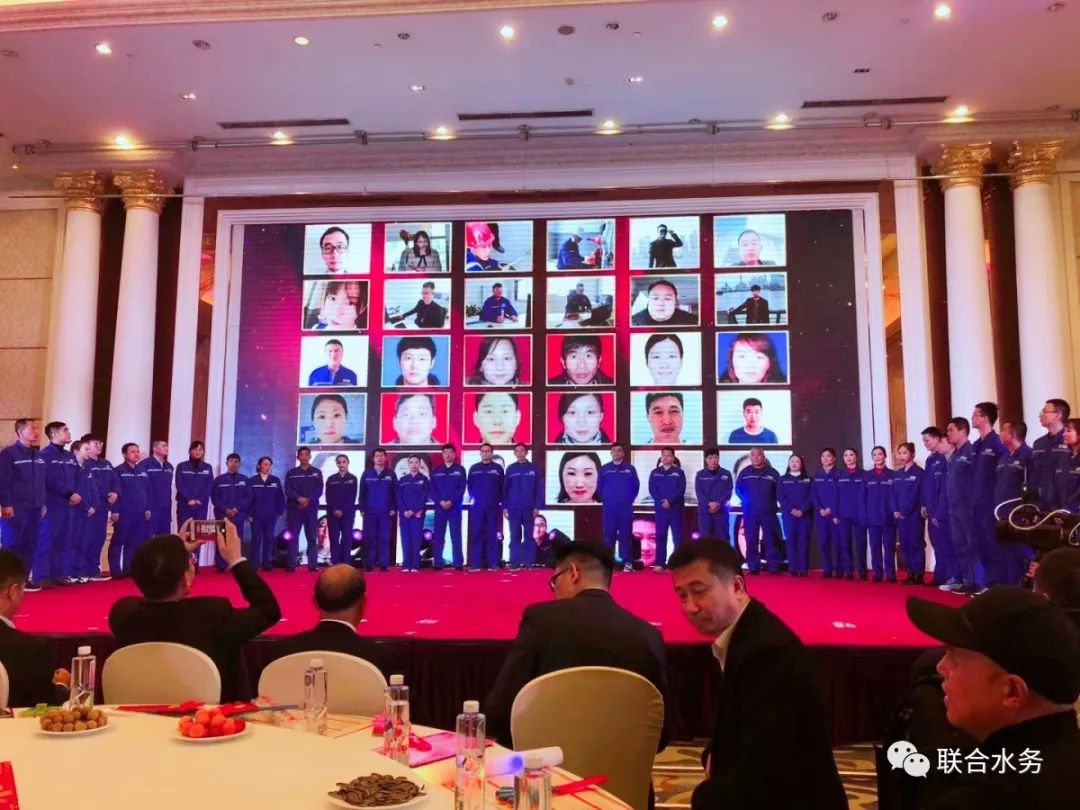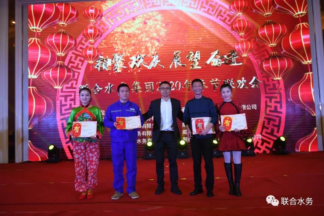聯(lián)合水務(wù)集團(tuán)董事長兼總裁俞偉景先生致新春賀辭 俞總的致辭情真意切,振奮人心,另一個提振士氣的時刻又將到來。2019年,全集團(tuán)共產(chǎn)生了37位先進(jìn)員工,他們在各自的崗位上做出了突出的成績,為彰顯榜樣的力量、鼓舞干勁,聯(lián)歡會對先進(jìn)員工們進(jìn)行了現(xiàn)場表彰。他們邁著堅定的步伐、帶著自信的微笑,走上臺上,揮手示意,特邀嘉賓長江國控金融控股有限公司董事局主席蘇云先生等、集團(tuán)董事長兼總裁俞偉景先生等總部各位領(lǐng)導(dǎo)、各項(xiàng)目公司總經(jīng)理上臺為他們綬紅綢帶、合影留念,并一起給聯(lián)合水務(wù)全體家人拜年,送出了新春祝福。