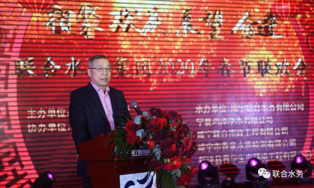 聯(lián)合水務(wù)集團(tuán)董事長兼總裁俞偉景先生發(fā)表總結(jié)講話 寒辭去冬雪,暖帶入春風(fēng)。1月21日,雨后初晴的香城泉都咸寧,山巒疊翠,碧空如洗,空氣格外清新,處處散發(fā)著盎然生機(jī)。聯(lián)合水務(wù)集團(tuán)第十四屆新春聯(lián)歡會暨咸寧聯(lián)合水務(wù)有限公司成立十周年慶典大會,伴著氤氳香氣、霧氣繚繞,在這人間仙境盛大舉行。來自全集團(tuán)各地的領(lǐng)導(dǎo)、員工、演職人員以及社會各界的嘉賓、媒體朋友共計500余人出席,喜迎新春、共度盛景。 下午15:00,聯(lián)歡會正式拉開了序幕。“踏著和諧的節(jié)拍感受春天的愛,聯(lián)合水務(wù)的家園裝點(diǎn)春天的色彩……”在歡快祥和的氛圍當(dāng)中,一首由咸寧公司帶來的開場歌伴舞《和諧家園》點(diǎn)燃了全場激情。絢麗的色彩,曼妙的舞姿,深情的歌詠,別致的造型,無一不讓到場嘉賓陶醉于其樂融融的祥和氛圍中。 聯(lián)合水務(wù)集團(tuán)自成立以來,已走過了十六年的歷程。在成長中發(fā)展,在發(fā)展中壯大。由成立之初只有宿遷一個供水項(xiàng)目,到如今擁有遍及國內(nèi)9省、16市的26家項(xiàng)目集團(tuán)公司,并且走出國門、走向國際,成功拓展了孟加拉海外項(xiàng)目。隨著集團(tuán)公司的發(fā)展,已擁有了1000多名員工,正像一個溫暖的大家庭、和諧的好家園。聯(lián)合水務(wù)集團(tuán)董事長兼總裁俞偉景先生作為聯(lián)合水務(wù)大家庭的大家長,發(fā)表了熱情洋溢的新春致辭。他向生活和工作在全國各地的聯(lián)合水務(wù)的同事們及其家人、向遠(yuǎn)在異國他鄉(xiāng)、奮戰(zhàn)在集團(tuán)首個海外項(xiàng)目——孟加拉達(dá)卡項(xiàng)目的6位同事們送上最熱烈的新年問候和最誠摯的謝意。恰逢咸寧聯(lián)合水務(wù)有限公司成立10周年之際,俞總感慨萬千,他說改制10年來,集團(tuán)公司投入了大量的人力、物力、財力,在聯(lián)合水務(wù)咸寧公司全體員工的共同努力下,咸寧的供水事業(yè)發(fā)生了令人欣喜的巨變,徹底改變了咸寧自來水公司原來設(shè)備落后、設(shè)施破爛、效率低下的局面。2019年,聯(lián)合水務(wù)在全國的5個城市的供水公司為總計70多萬用戶提供了優(yōu)質(zhì)的供水服務(wù),我們的污水處理公司為全國9個城市處理了超過1億噸的生活和工業(yè)污水。為當(dāng)?shù)氐乃h(huán)境保護(hù)、為祖國的綠水青山做出了我們的貢獻(xiàn)。最后,俞總向全體聯(lián)合水務(wù)的員工在去年所作出的每一份努力表示衷心的感謝!2020年,他將與全體員工攜手奮進(jìn)、不負(fù)韶華、邁向新的征程。