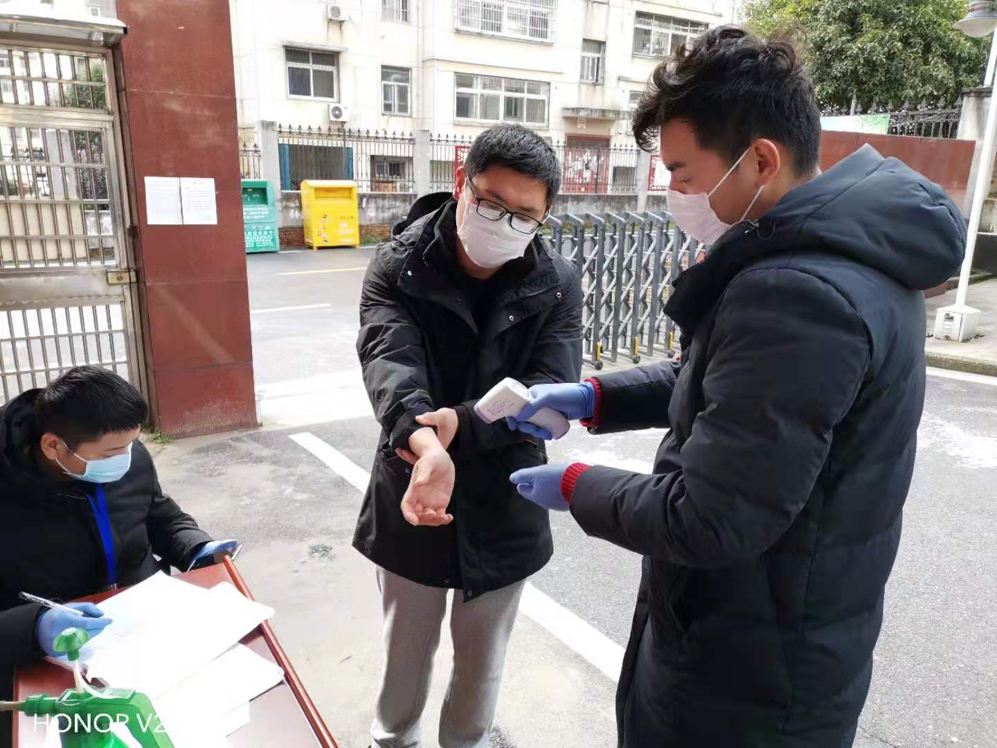 圖4:兩位志愿者為外出人員量體溫并登記 在防控新型冠狀病毒感染的肺炎疫情的第一線,咸寧聯合水務有限公司30余名志愿者積極投身疫情防控工作,充分彰顯了愛心善意和責任擔當,用熱血抒寫著擔當,將行動銘刻成責任,“團結、誠信、拼搏、共贏”的精神在城區每一個角落熠熠閃光,為打贏這場疫情防控阻擊戰注入了最溫暖的水務力量!