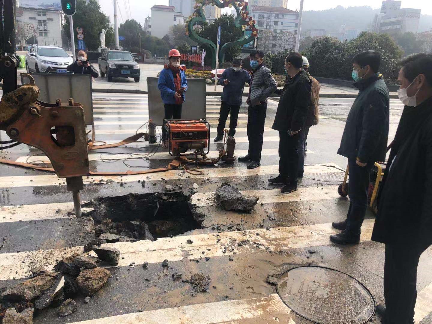 圖3:搶修保供水 1月31日上午,永安城區南山十字路口DN400供水主管因天氣寒冷、管網老化導致爆破。咸寧聯合水務搶修隊在挖掘機無法快速到達搶修現場的情況下,采用人工開挖方式帶水搶修,經過搶修人員的齊心協力,圓滿完成搶修任務,確保南山片區居民正常用水。 2月3日上午,市城管執法委巡查時發現溫泉城區新二號橋中行段DN315供水主管爆破。咸寧聯合水務有限公司聞訊后迅速啟動供水搶修應急預案,公司總經理毛雄輝和管網分管領導李暉靠前指揮,用最快速度將供水搶修人員、工程車輛和物資調配到位,迅速開展搶修工作。搶修人員不畏疫情帶來的困難,不畏嚴寒,更是來不及吃中午飯,爭分奪秒實施搶修,經過3個多小時的緊張作業,提前2小時完成了搶修任務,確保新二號橋片區居民正常用水。 眾志成城,共克時艱,疫情期間,搶修隊在王德勝和毛義兩位負責人的帶領下,共完成搶修工作30余次,他們篤定前行,分秒必爭,無時無刻不忘城市供水人身份,始終堅守在供水保障第一線,確保工作不斷不亂,平穩有序。 志愿擔當,服務社區 時有所需,必有所為。咸寧聯合水務有限公司在保障城區正常供水外,公司黨組織還發揮黨團員帶頭作用,組成了一支30余名青年員工的志愿者服務隊,奔赴城區21個物業小區,協助小區物業開展疫情防控工作。