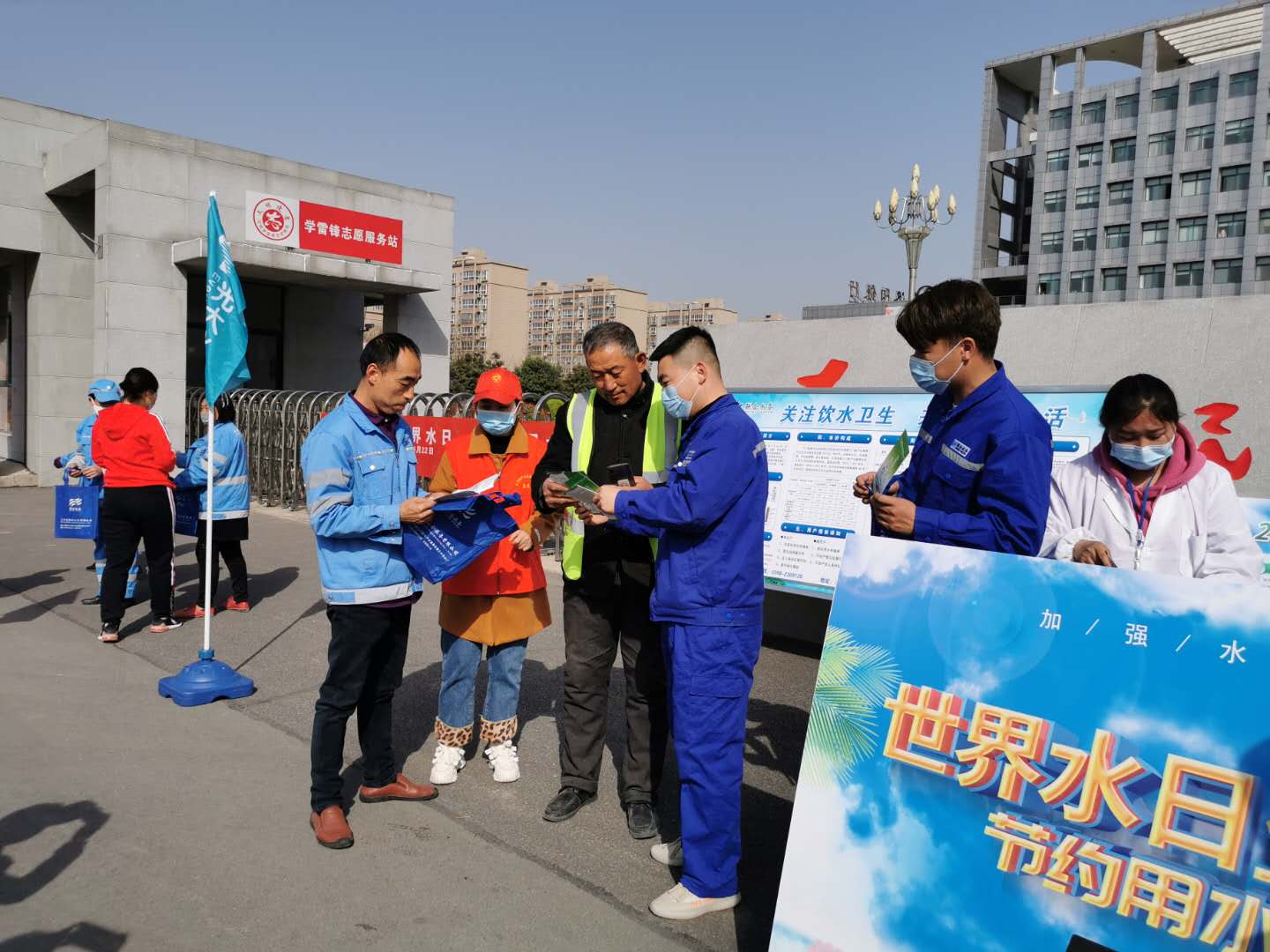 圖3:為到場群眾分發(fā)宣傳彩頁及小禮品 古人云:“木無本必枯,水無源必竭”。響應國家號召進行節(jié)水用水宣傳,是我們供水人必盡的義務。“今天節(jié)約一滴水,留給后人一滴血”,讓我們攜手并進堅持節(jié)水優(yōu)先,共建幸福河湖!