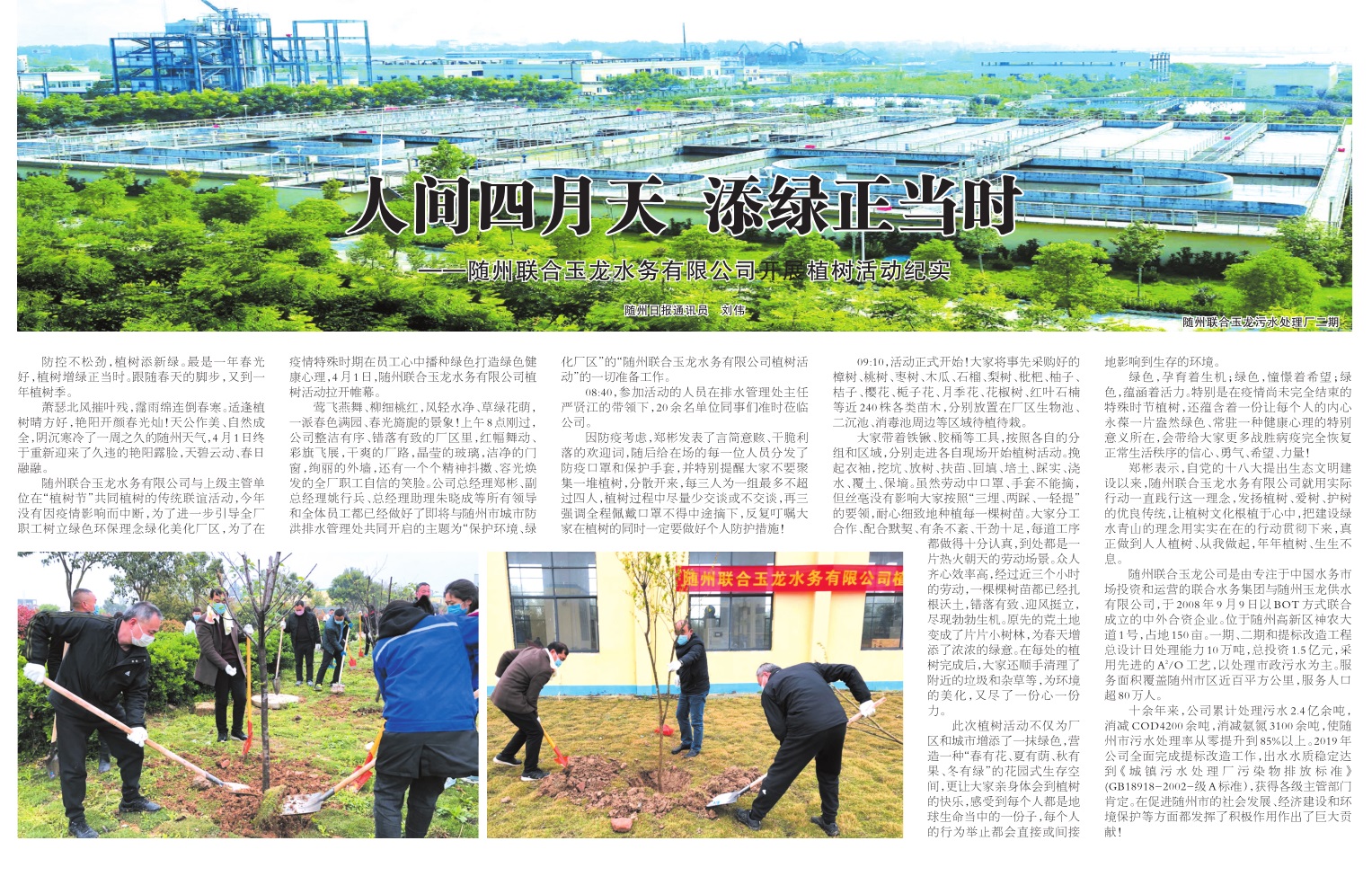 | 人間四月天 添綠正當時——隨州聯合玉龍水務有限公司開展植樹活動紀實 | ||