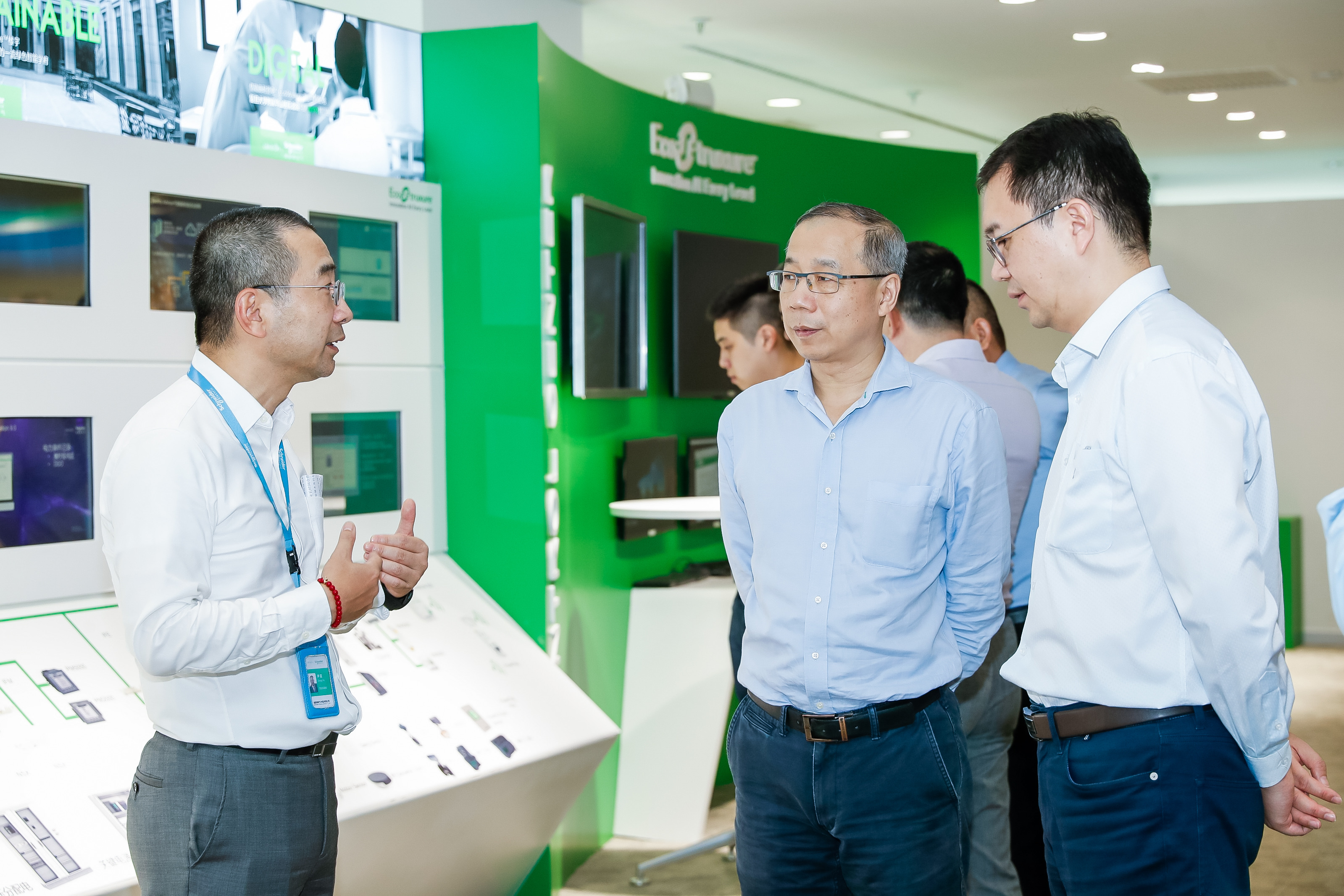 圖1:簽約儀式現場 簽約開始前,雙方共同參觀了施耐德電氣上海創新展廳展示的以提供安全可靠、開放且互聯互通的能源與自動化數字解決方案理念,體驗千里眼資產顧問,利用一體化工程與設計、數字化交付等解決方案的數字孿生工廠等。