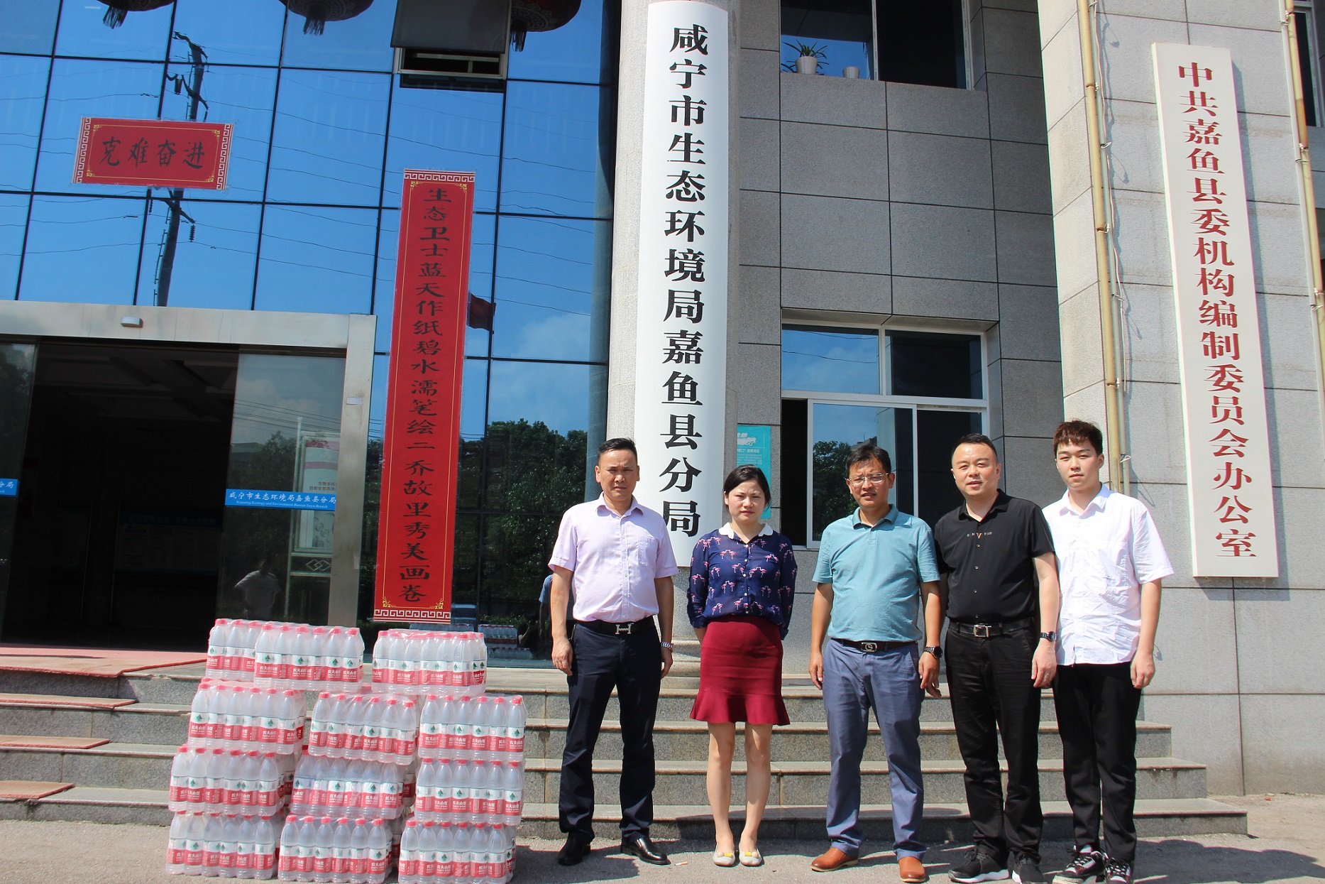7月31日,咸寧市聯太生態環境科技有限公司總經理陳博帶領公司員工,載著一車純凈水、八寶粥、桔片爽等食品物資,頂著烈日赴斧頭湖嘉魚圍堤防汛指揮部、四邑公堤防汛指揮部嘉魚縣簰洲灣鎮防汛哨所,對日夜值守在一線的防汛人員進行慰問。