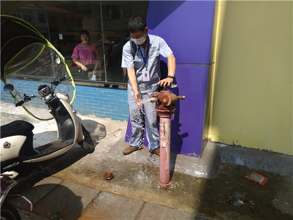 圖:工作人員檢查學校消防栓 在咸寧職業技術學院,咸寧聯合水務二次供水運營部經理明道順與學校負責人親切交流,就復課后的用水需求、用水常識進行洽談,并查看學校水表和消防栓;在咸寧市紅纓國際幼兒園,明經理將用水安全相關知識對學校領導一一進行講解,并現場操作演練用水安全需注意的事項。通過逐一對學校指導供水管網和二次供水水箱進行沖洗等方式,可避免自來水長時間未使用帶來的細菌感染,消除校園供水安全隱患。 當好“店小二”,做好“水服務”是咸寧聯合水務當前工作重中之重。下一步,咸寧聯合水務將根據市區各學校用水需求,及時做好水壓科學調度,確保咸寧城區各校園廣大師生飲用“安全、質優、量足”的自來水! |
