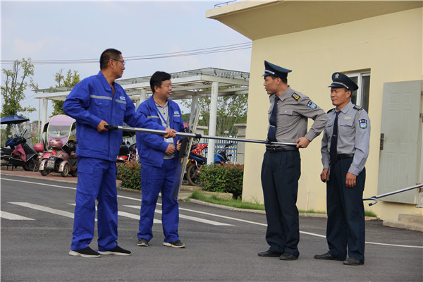 圖:反恐防暴演練現場 “放下武器,不準動”。反恐防暴演練在緊張激烈的斗爭中開啟。演練現場在王英水廠正門,一名可疑人員持兇器強行進入水廠,盡管保安人員一再言語阻止,但可疑人員依舊我行我素,采取翻越柵欄方式進入水廠。保安人員第一時間拿起盾牌、警棍、鋼叉等警用防暴工具,迅速將可疑人員制服,順利完成此次反恐防暴演練。