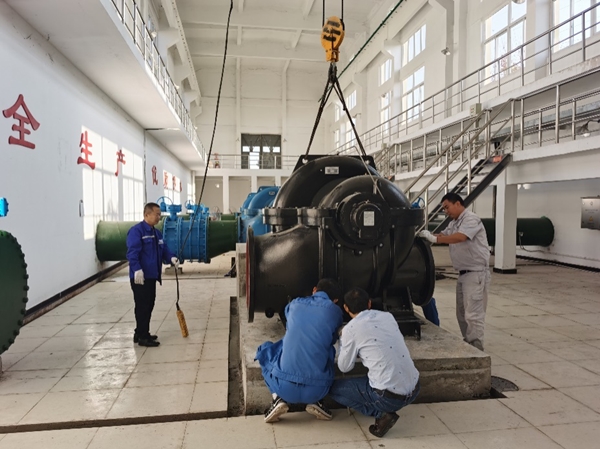 經過設備選型、采購、安裝配件整理系列工作完成后,近期完成了新裝機組的調試,并投入運行。新增的送水泵機組送水流量為3100m3/h。整個安裝工程分為機組水泥地基制作、機組的安裝尺寸定位、進出水管的焊接施工、動力電纜、控制電纜接線檢測。高精度的安裝效果才能保證今后的長久平穩運行,機電設備部動用部門全部資源,為新機組的安裝竭盡所能。