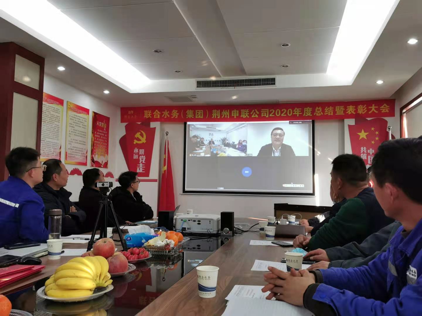 “玉鼠載譽(yù)辭舊歲,金牛報(bào)喜迎新春”。2月5日,荊州申聯(lián)公司召開以“共克時(shí)艱、開創(chuàng)未來”為主題的2020年工作總結(jié)暨表彰大會(huì),會(huì)議全面回顧2020年主要工作,分析不足,總結(jié)經(jīng)驗(yàn),安排部署2021年目標(biāo)任務(wù)。聯(lián)合水務(wù)集團(tuán)董事兼高級(jí)副總裁劉猛以及荊州申聯(lián)公司主管級(jí)以上人員、先進(jìn)員工、員工代表共計(jì)26人參加了會(huì)議,會(huì)議由人事行政副總經(jīng)理劉斌主持。為加強(qiáng)疫情防控工作,會(huì)議采取“現(xiàn)場+視頻直播”的方式進(jìn)行。