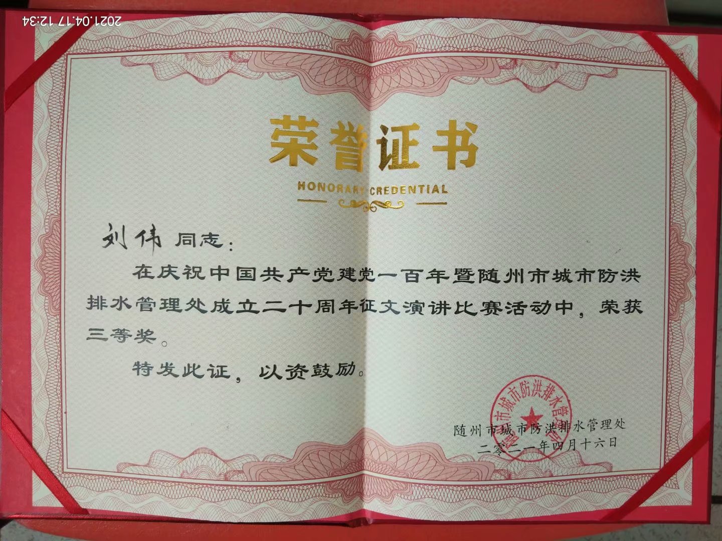 劉偉榮獲演講三等獎(jiǎng) 經(jīng)過近兩個(gè)小時(shí)的比賽和評比,羅姚獲得了第二名優(yōu)異的成績,劉偉獲得了第三名的好成績。 隨州聯(lián)合水務(wù)積極參加隨州市住房和城鄉(xiāng)建設(shè)局和隨州市城市防洪排水管理處等上級主管部門組織的各類活動(dòng),都取得不錯(cuò)的成績。兩位選手以聲情并茂的演講,充分展示了聯(lián)合水務(wù)人銳意進(jìn)取、務(wù)實(shí)擔(dān)當(dāng)?shù)牧己镁耧L(fēng)貌,為公司贏得榮譽(yù)的同時(shí),自身能力也得到了展示。 |