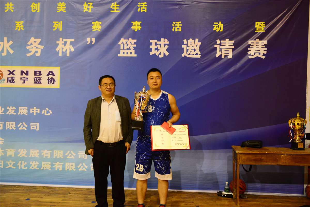體育事業發展中心周主任為聯合水務頒發亞軍獎杯 邀請賽于4月15日在金葉體育館和CBD球館開賽,歷經8天的38場比賽,戰況激烈,精彩紛呈奪人眼球。“更高、更快、更強”,攻與防、突與投,加油鼓勁、吶喊助威,每球必爭、每分必奪,現場氣氛異常熱烈,競技水平全面提升。高昂的斗志,高超的球藝,頑強的精神,賽出了水平、風格和友誼,賽出了良好的賽風賽紀,賽出了滿滿的正能量,也賽出了屬于自己的榮耀。最后,咸安區、聯合水務、市稅務局三支籃球代表隊分獲冠亞季軍,市委市政府兩辦、市委組織部代表隊獲得“精神文明獎”,省王英水庫管理局、區綠投代表隊獲得“最佳團隊獎”。 閉幕式由咸寧市籃協秘書長王漢富主持,邀請賽裁判長劉勇宣讀了比賽結果,咸安區人民政府副區長陳偉、國家稅務總局咸寧市稅務局副局長程志平、咸寧市土地儲備開發交易中心主任吳達勝、咸寧市體育事業發展中心副主任周方亮、群體部部長李金星、聯合水務集團咸寧區域總經理陶瑛等領導和嘉賓出席閉幕式并頒獎。