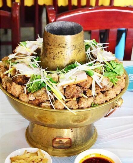 圖:絳州銅火鍋 銅火鍋做法 絳州銅火鍋看似簡單,卻不僅僅是鋪幾層菜,添上湯那么簡單,底湯怎么熬,菜品怎么放,都十分講究。 新絳要說銅火鍋哪家好,當屬合勝火鍋。絳州合勝火鍋沿襲了傳統的火鍋工藝,但其老板韓合勝和老板娘李春英又根據當地群眾的飲食習慣,進行了科學的配料和烹調,以“肉多、價低、湯鮮美”聲名遠揚。 做銅火鍋的關鍵之處是湯汁,俗話說“火鍋好不好,嘗湯就知道”,說的就是這個理。 合勝火鍋光是熬制底湯就需5小時~6小時,里面有整只雞、豬大骨、豬肉,再配以草果、香葉、桂皮、小茴香等20多種香辛料,一直大火熬制。然后就是配湯,醬油、鹽、味精、調料粉放多少,也得稱量,只為保證味道的純正。用料實在、工序復雜,這也是為什么新絳銅火鍋湯好喝的原因之一。此外,湯汁經過與肉、菜同煮,除了原湯的濃郁,還有了菜的清香與肉的鮮美,味道更豐富,口感更佳,尤其在秋冬季,吃完火鍋后,再喝上一口湯,全身都開始變得暖和起來。