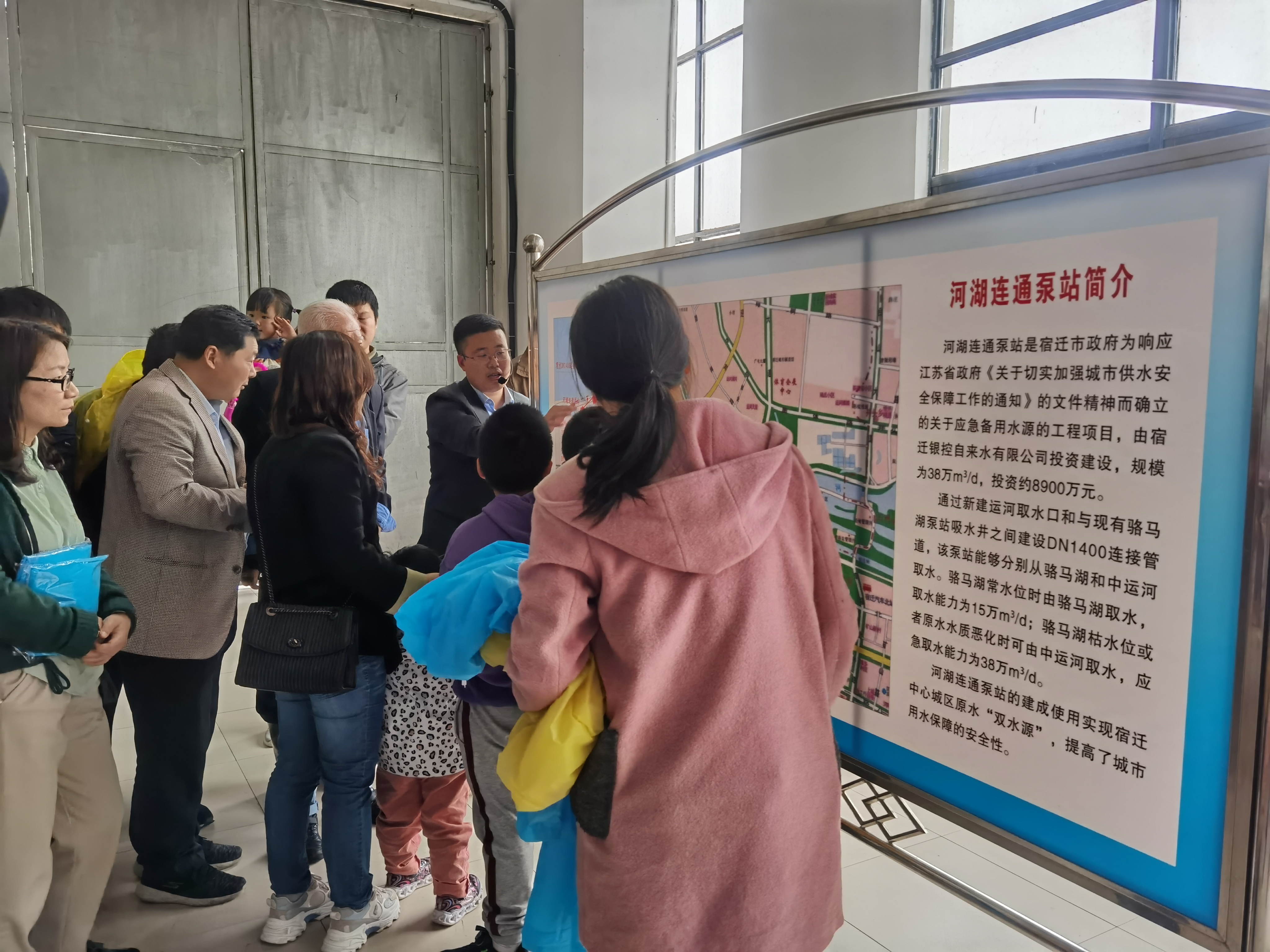 水是生命之源,彌足珍貴,節(jié)約用水是人類永恒的主題。今年5月11日—16日是我國第30個“城市節(jié)約用水宣傳周”,今年的主題是“貫徹新發(fā)展理念,建設(shè)節(jié)水型城市”。為大力宣揚節(jié)水理念,增強市民節(jié)水意識,5月15日,聯(lián)合水務(wù)宿遷供水公司與市住房和城鄉(xiāng)建設(shè)局、宿遷日報社共同舉辦了“一滴水的旅程”水廠開放日直播活動。參加活動的有熱心的市民代表、學(xué)生代表,還有市綠色環(huán)保協(xié)會的志愿者們,共計40余人。 小雨紛飛,依然沒能阻擋大家探秘自來水的高漲熱情。上午8:30,從宿遷日報社集中乘車出發(fā),大家一路歡聲笑語,直奔第一站——駱馬湖飲用水源地。途中,市住房和城鄉(xiāng)建設(shè)局供排水中心朱泉主任為大家分享了一些節(jié)水小知識,孩子們踴躍提問,增長了節(jié)水知識和認(rèn)識。到達駱馬湖水源地,望向浩瀚飄渺的駱馬湖,煙霧縈繞,一望無際,大家紛紛表示駱馬湖是宿遷人的母親湖,保護水源,就是保護城市命脈。在河湖連通原水泵站,大家參觀了送水泵房,聽取了該泵站的詳細介紹。