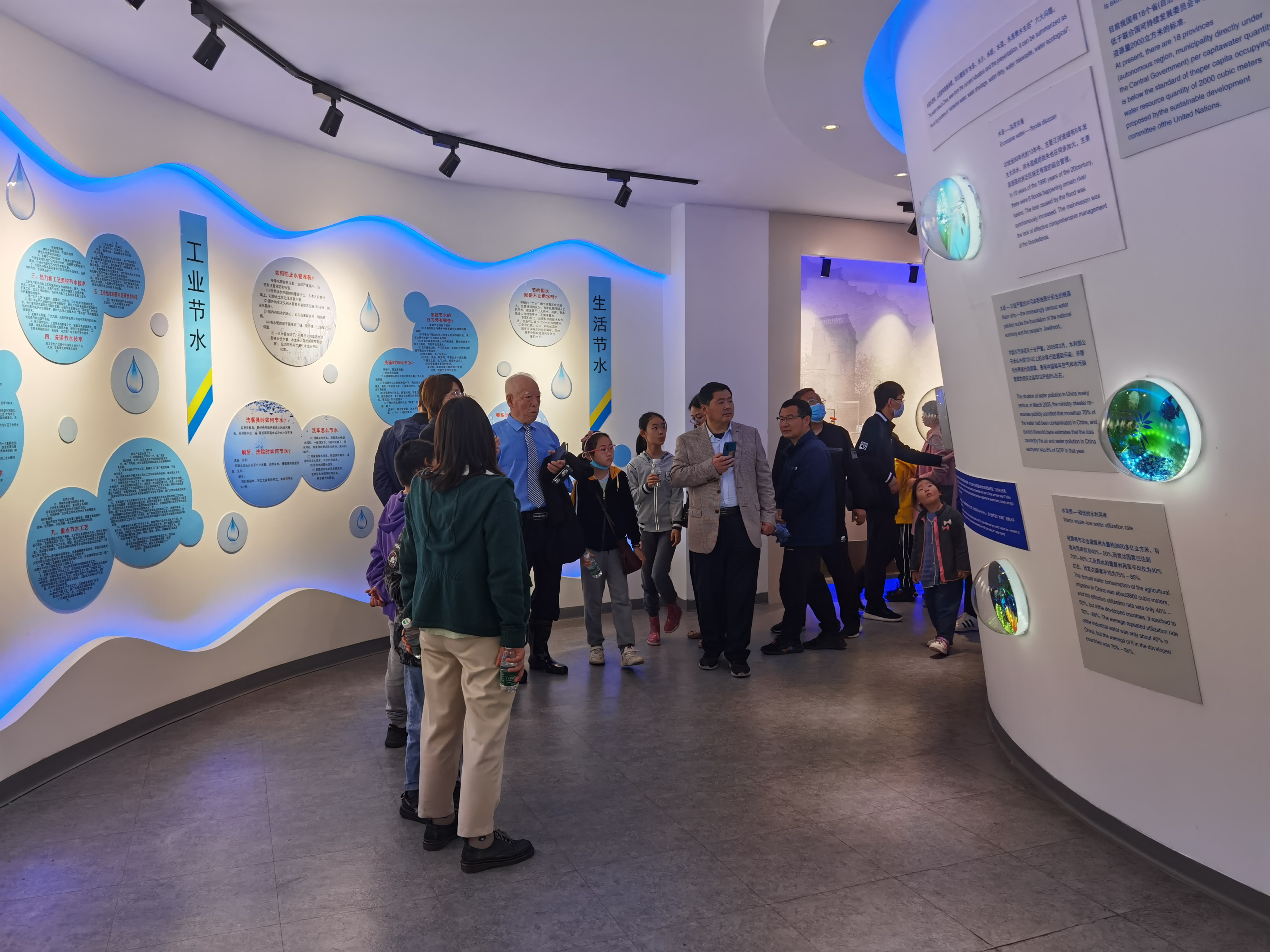 圖:參觀河湖連通泵站送水泵房 接下來,大家來到聯(lián)合水務(wù)宿遷供水公司二水廠,參觀制水工藝流程、水檢中心、調(diào)度中心,現(xiàn)場感受一滴水的制作工藝流程、了解水質(zhì)檢測控制及自來水的調(diào)度情況。 參觀完取水、制水、水質(zhì)檢測、送水調(diào)度等,大家?guī)е鴮ψ詠硭囊欢ㄕJ(rèn)識,走進了位于公司二水廠、由聯(lián)合水務(wù)集團全資打造的宿遷市水文化展示館。從論水展區(qū)的無源之水、萬源之源、水脈里程等展項到制水展區(qū)、節(jié)水展區(qū),大家通過聲、光、電、影等手段多維度地了解宿遷市的自來水和水文化,對宿遷市供水事業(yè)的發(fā)展、水文化和節(jié)水理念有了更為深入的認(rèn)識和深刻的記憶。孩子們紛紛在留言墻留言,表示要積極參與到節(jié)水行動中來。