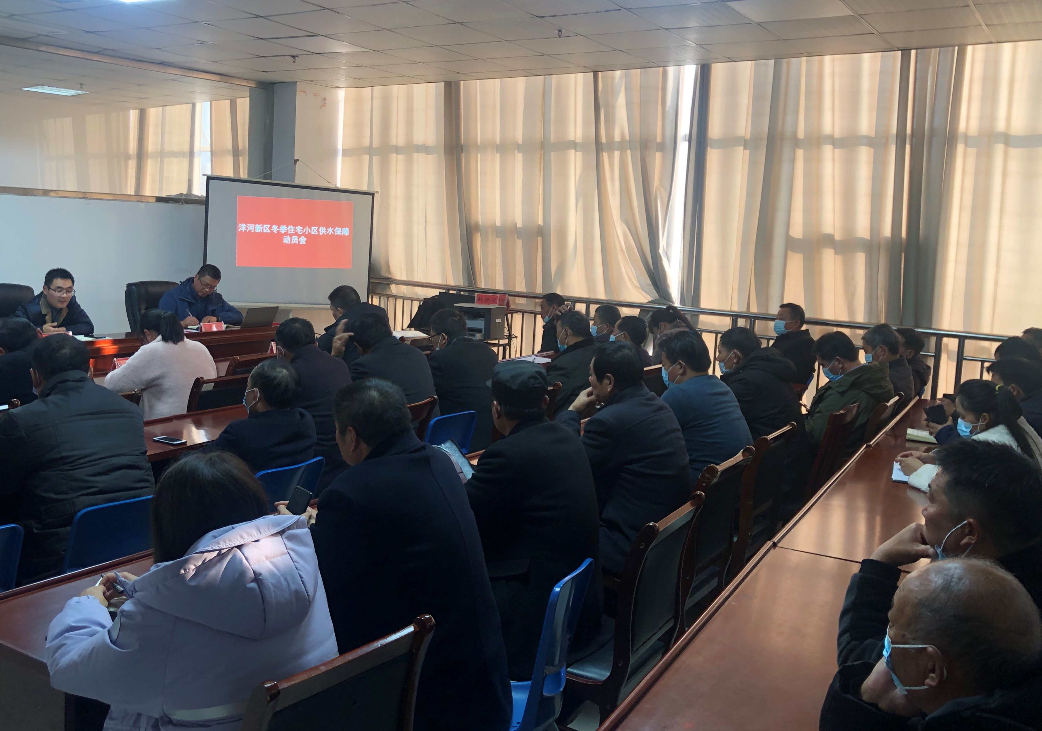 近日,洋河新區交通建設局組織召開新區冬季小區供水保障動員會。洋河新區交通建設局分管領導潘超,房管科物業負責人李高峰,洋河、倉集、鄭樓辦事處建設站物業管理負責人以及洋河新區內各物業經理約40人參加會議,江蘇聯合水務科技股份有限公司洋河區域供水服務中心時主任代表公司參加了本次會議。