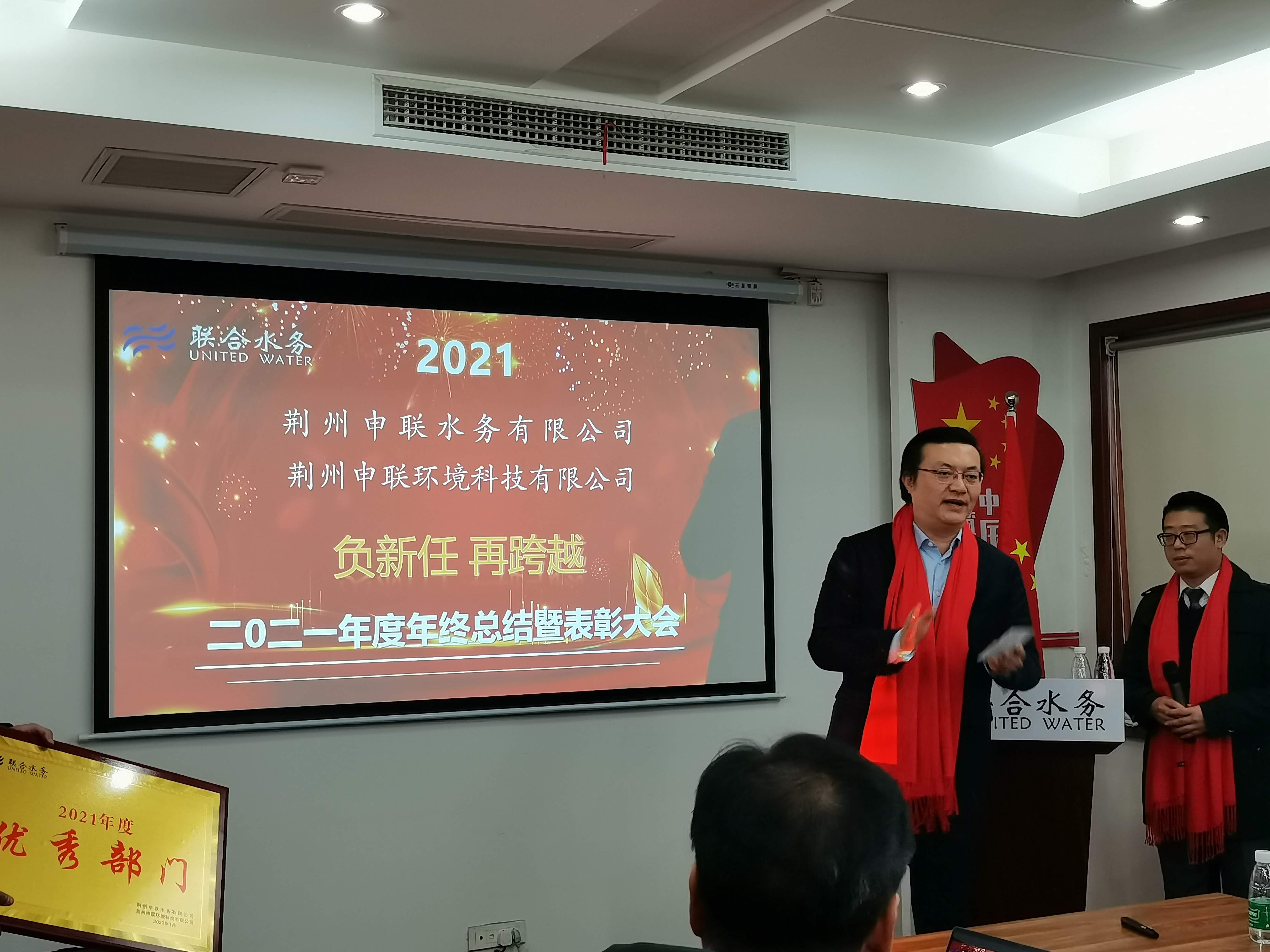 為全面回顧2021年主要工作,分析不足、總結經驗,提升短板、增強弱項,把舵定調2022年工作,以及表彰先進部門和員工。1月21日,荊州申聯公司召開以“負新任,再跨越”為主題的2021年工作總結暨表彰大會。江蘇聯合水務科技股份有限公司常務副總裁劉猛以及荊州申聯公司主管級以上人員、先進員工、員工代表共計30余人參加了會議,會議由總經理助理吳帆主持。